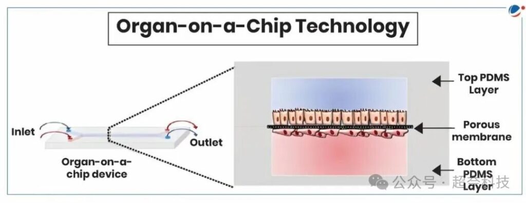 器官晶片(Organ-on-a-chip)聽起來很高大上,其實就是把人體器官的結構和功能「縮小版」地複製到一個小小的晶片上。這個晶片通常只有硬幣大小,但裡面包含了微小的通道和培養室,可以模擬血液流動、營養供給等生理過程。